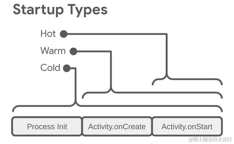 图 2. 包含各种启动状态及其各自进程的示意图,其中每个状态都将从绘制的第一帧开始。