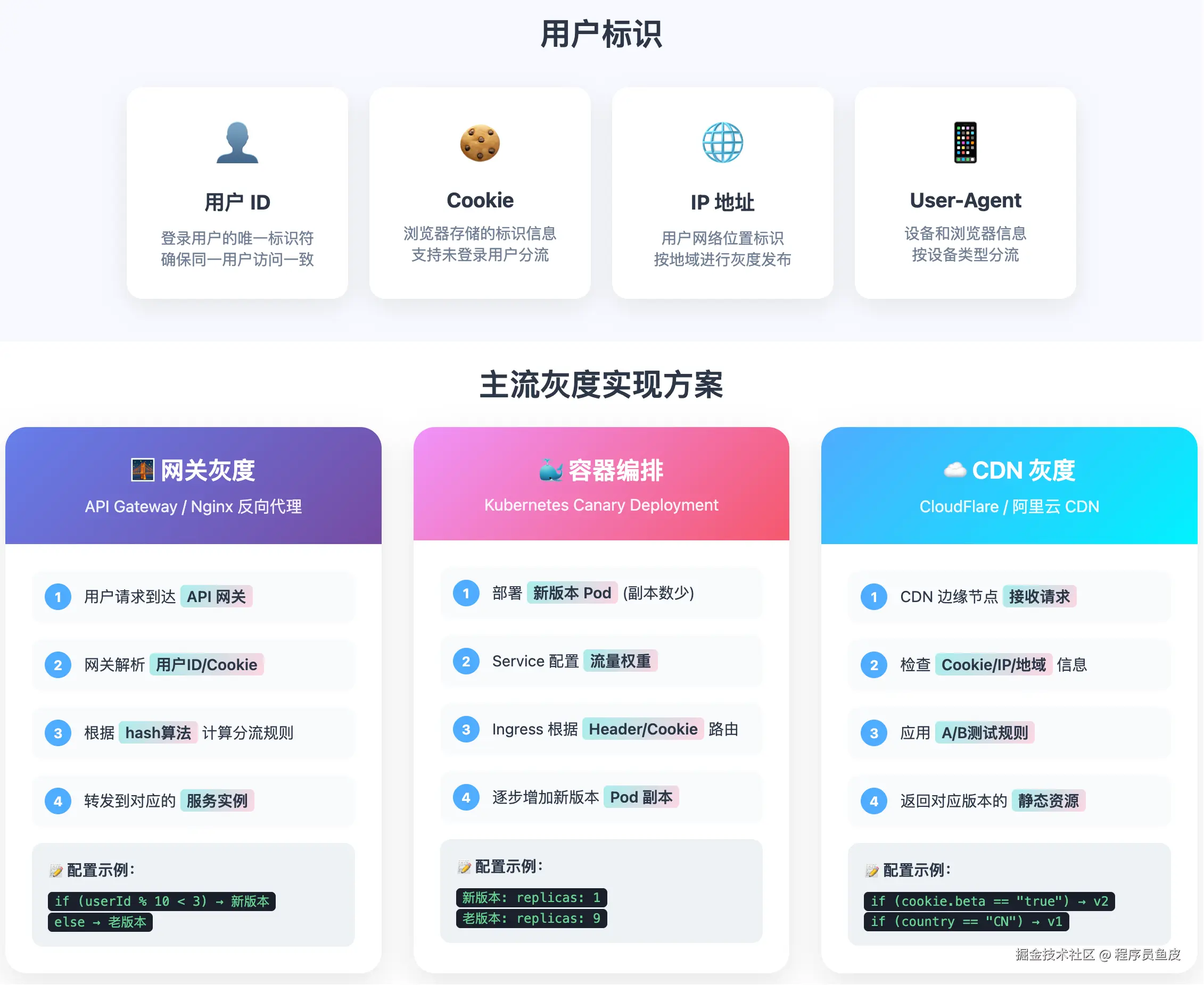 最近我们网站前端正在进行技术升级,为了保险起见,我们选择 灰度发布,先让一小部分用户使用新版本,而不是全量上线。