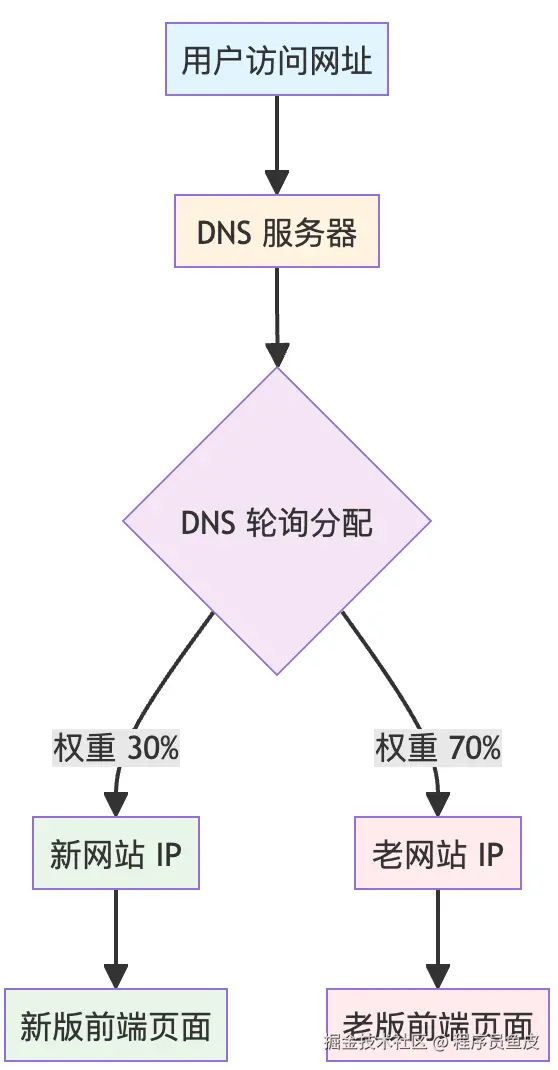 为了降低灰度的实现成本,团队心生一计:既然用户访问网站时,要先通过 DNS 服务器解析域名为 IP 地址。