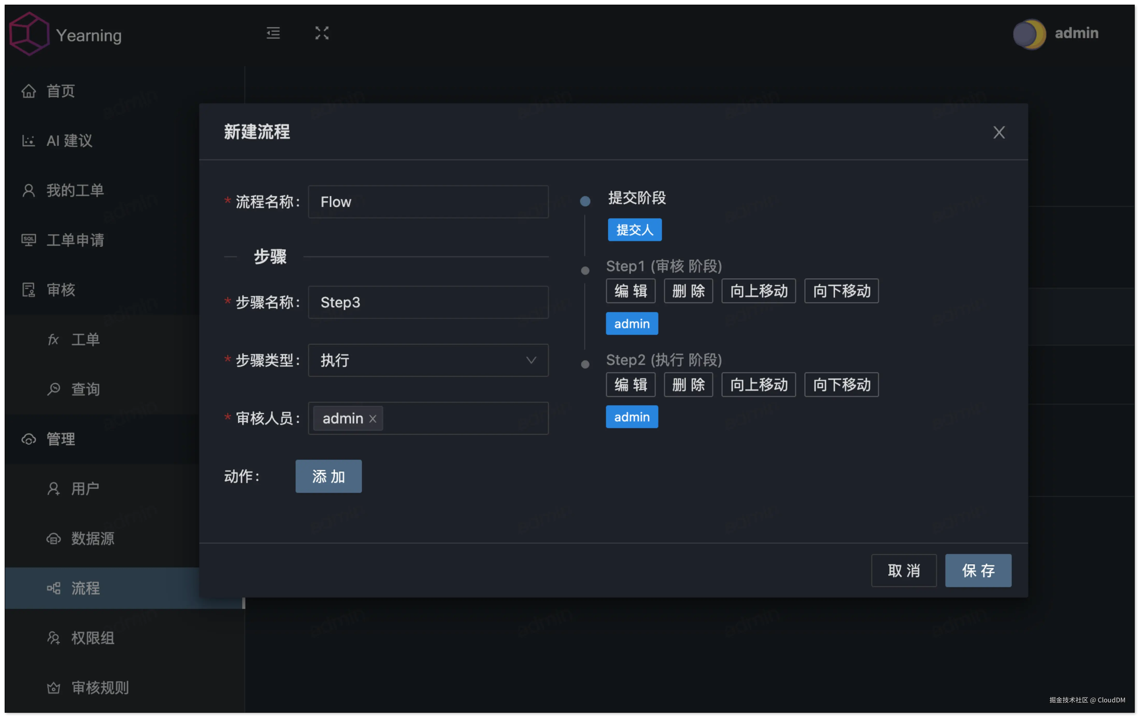 Yearning 不支持外部流程引擎,但可以通过内置流程引擎进行简单节点定义。