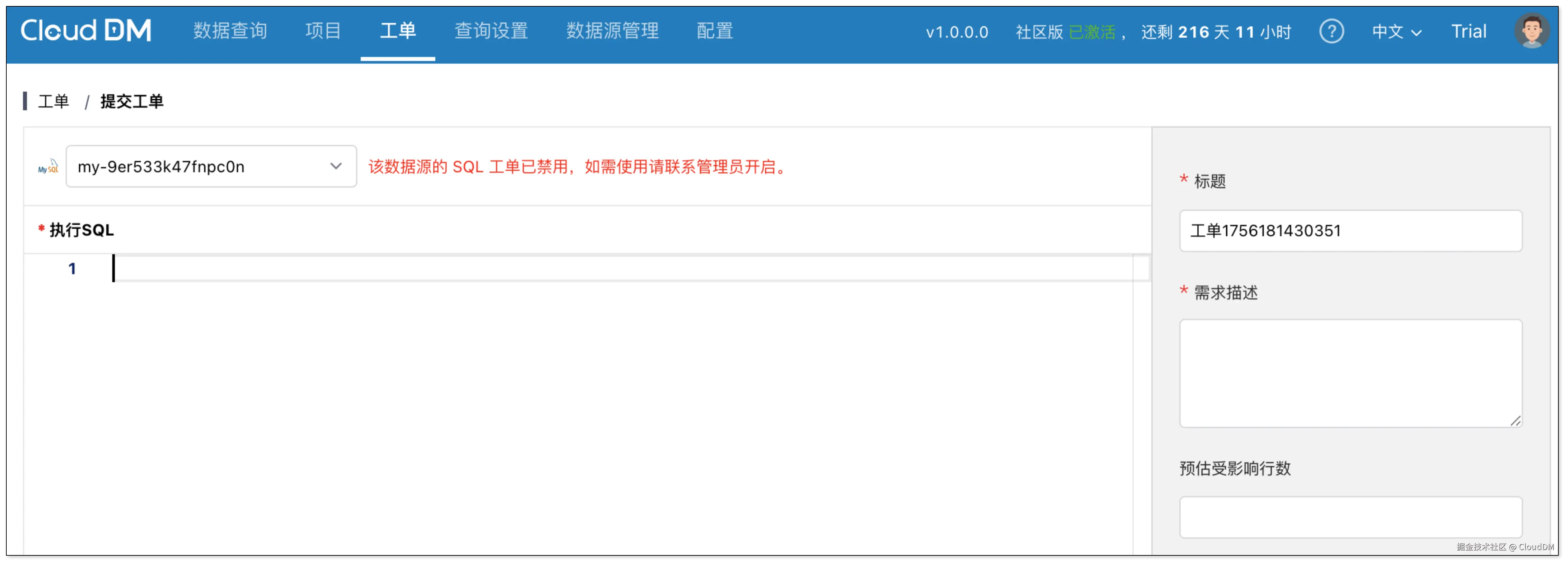 - 工单处理:CloudDM、Archery 允许在平台中标记工单已完成,DBA 可以根据工单内容,自己手动处理 SQL,这个设计给了 DBA 更大的灵活空间来应对一些特殊数据库。