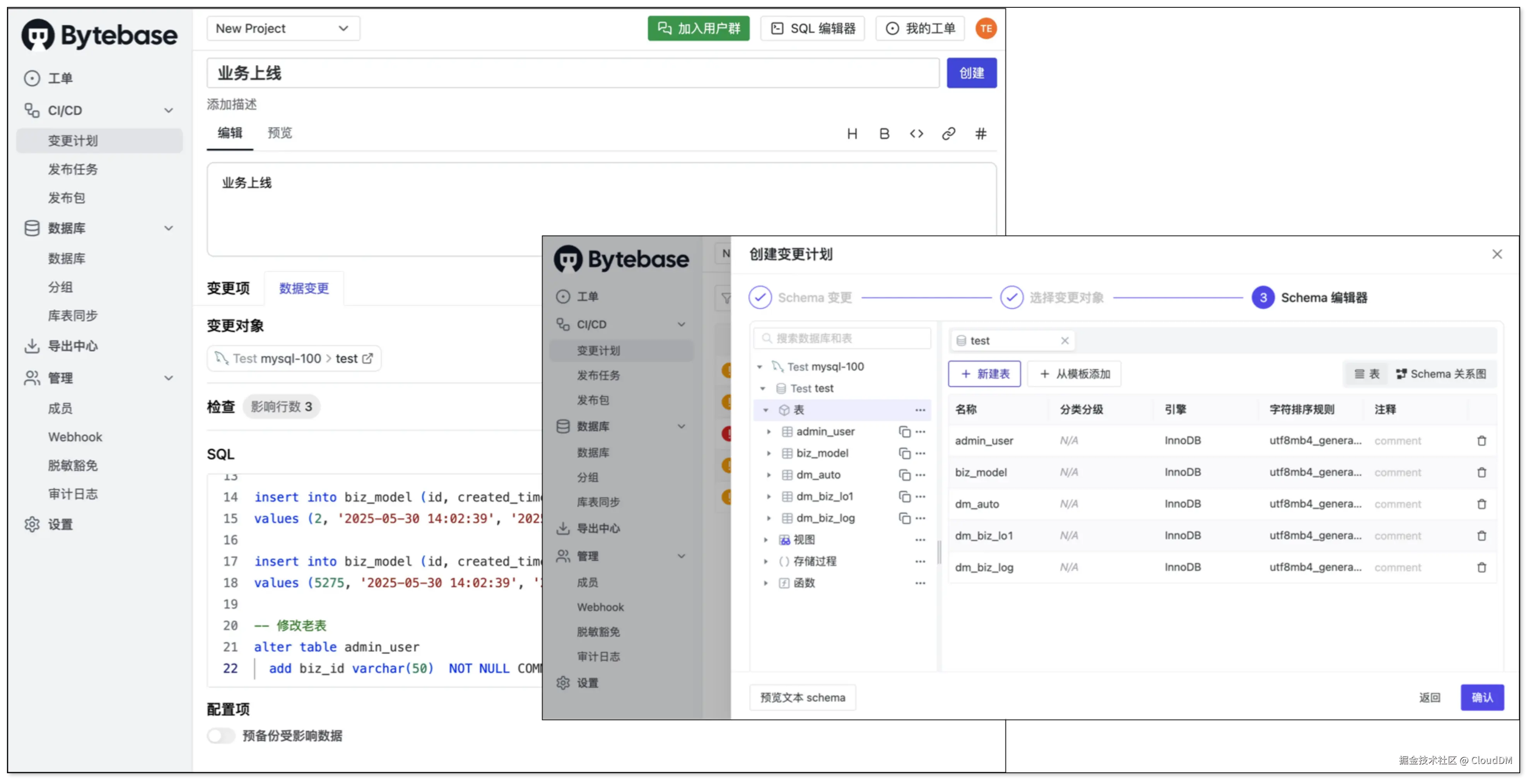 数据库变更是日常开发和运维里绕不开的活。为了降低线上环境出故障的风险,通常会配合工单系统来发布变更,这样流程可控,也能减少低级错误。市面上能选的工具不少,有开源的,也有商业化的。这次我挑了四款比较常见的:Yearning、Archery、Bytebase,还有 CloudDM,从工单场景出发做了一轮体验和横向对比,给大家一些参考。