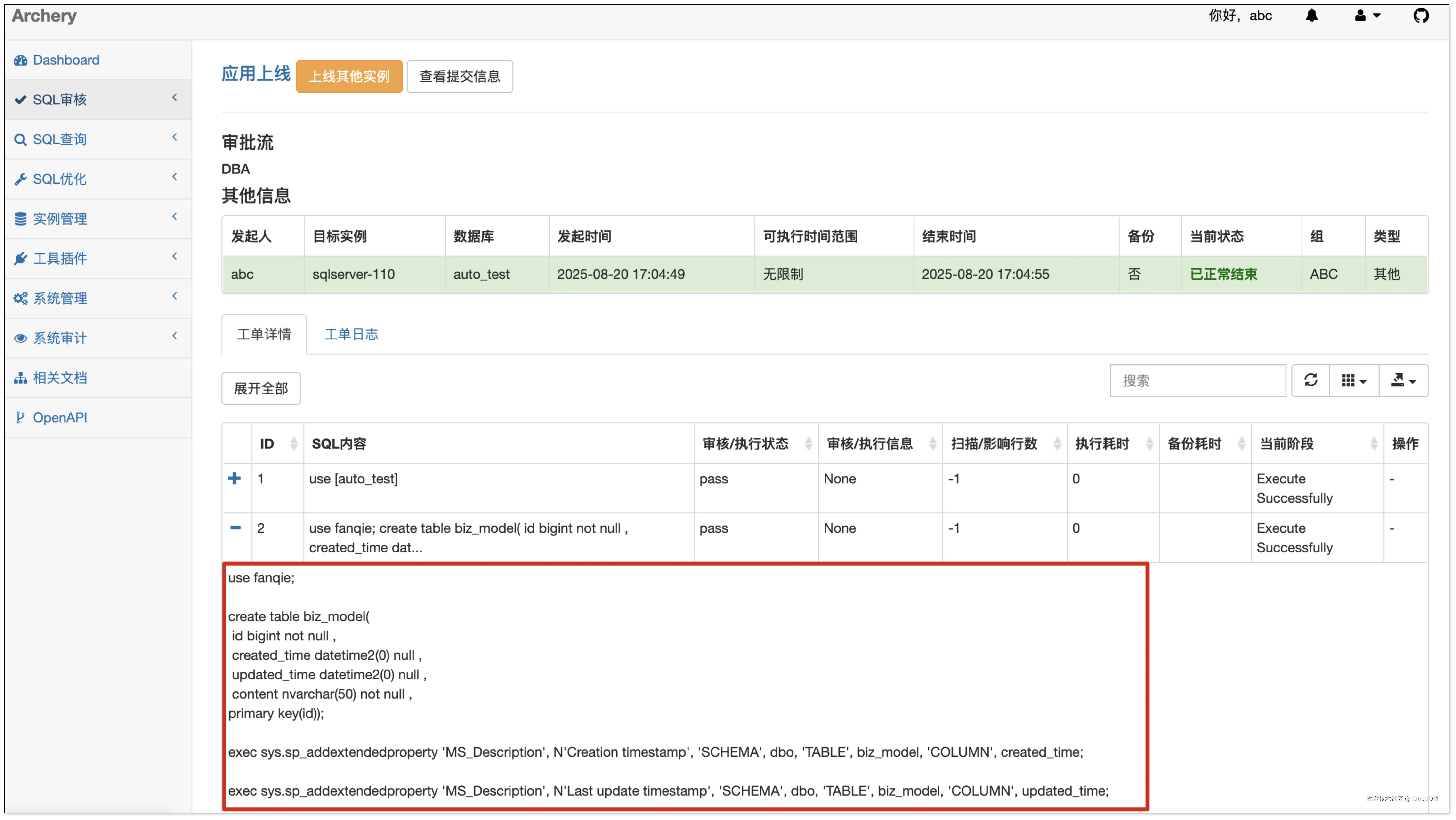 在 Archery 中工单递交允许 DDL/DML 混合使用。