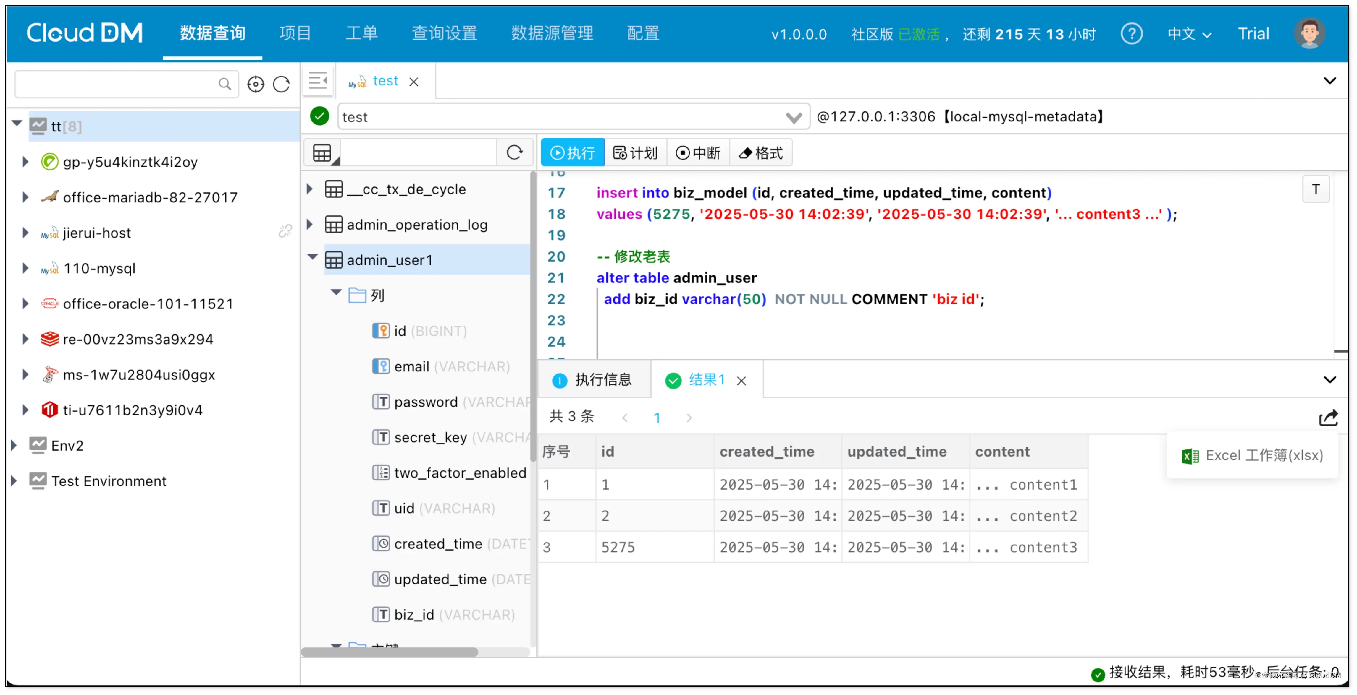 在 CloudDM 中,对数据库的操作分成三类:数据查询、CI/CD 和 工单。默认情况下,查询控制台只能执行查询语句,DDL/DML 需要通过工单才能执行。如果需要,也可以修改环境策略,让它成为一个 SQL 客户端。