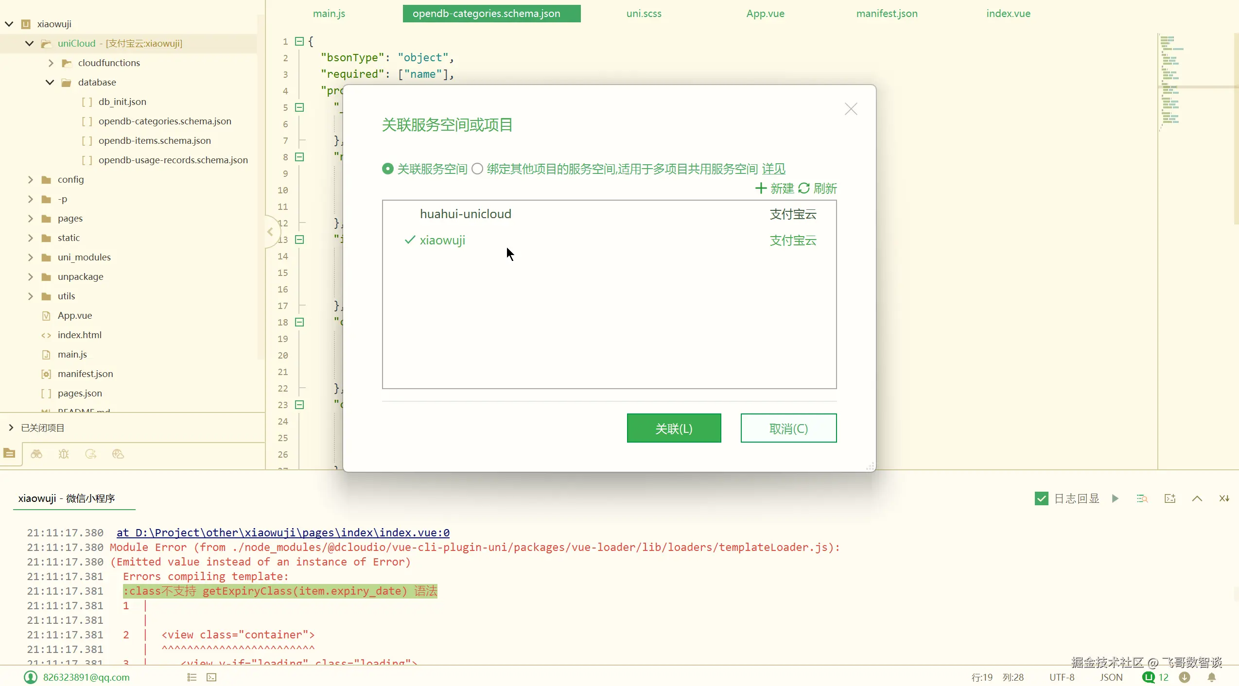 今天使用的是 uniapp 自带的 uniCloud,也有免费额度。