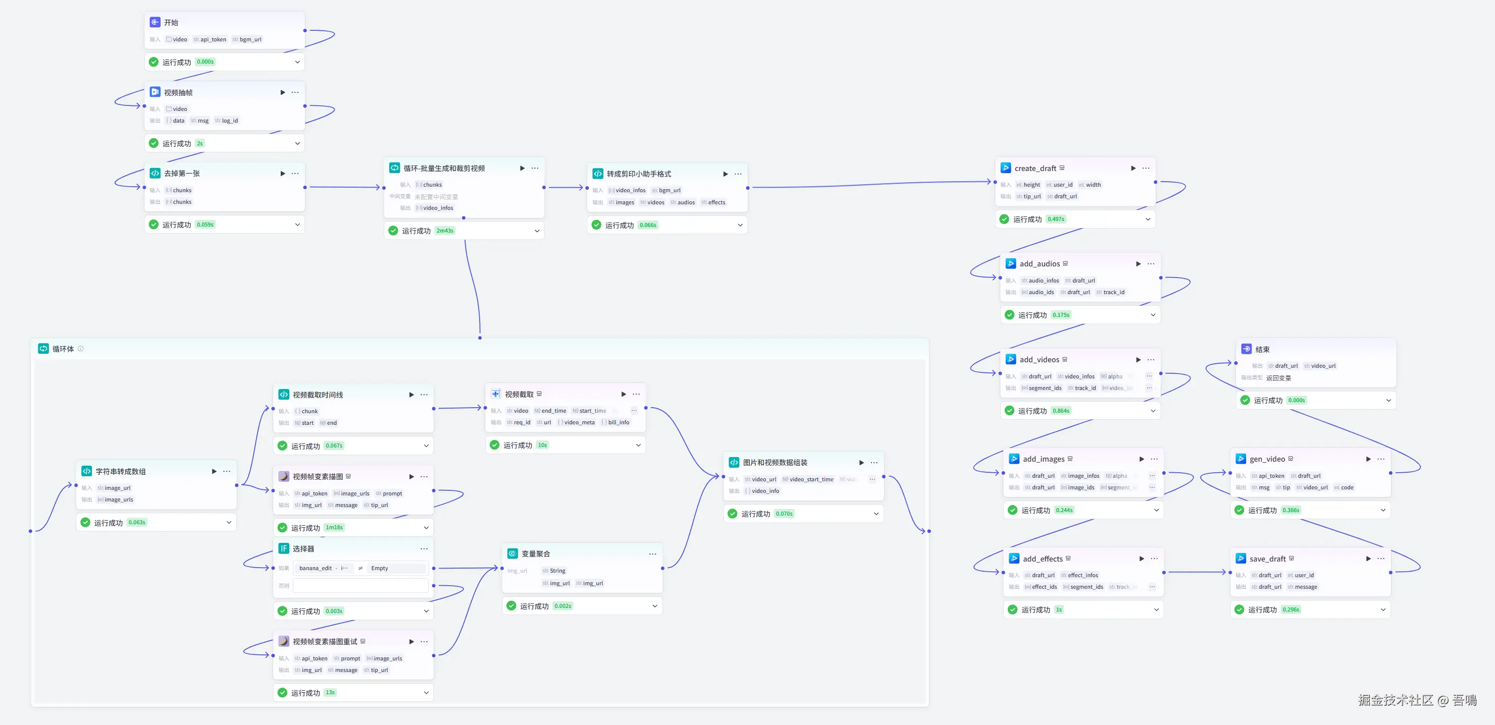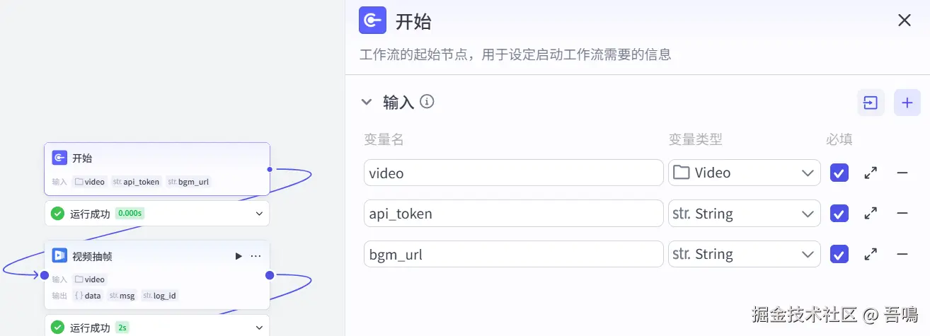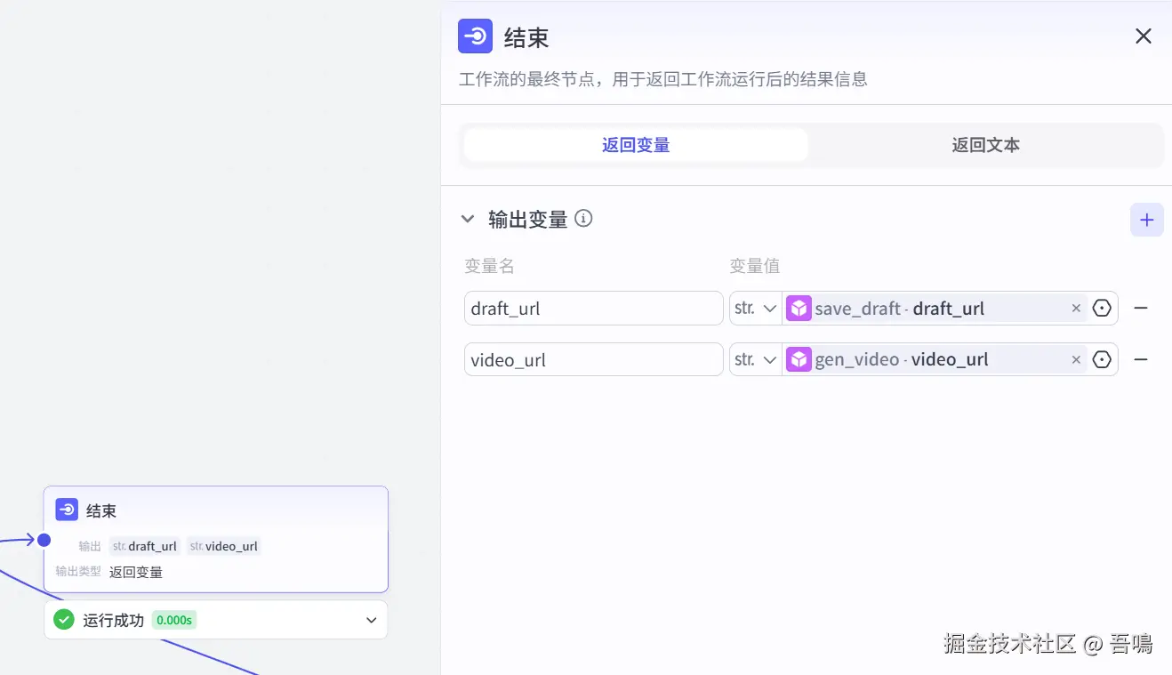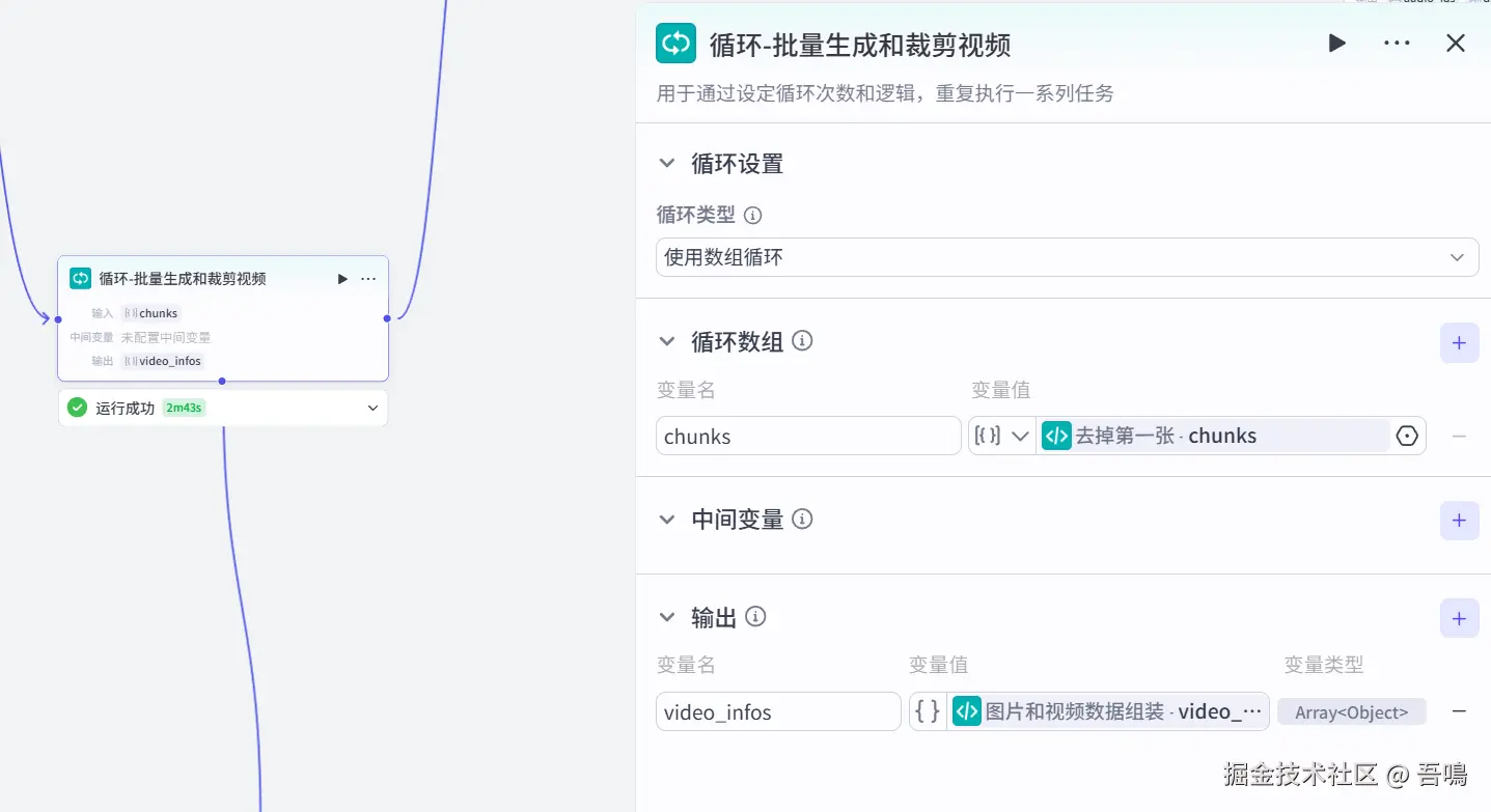 这个节点使用到了扣子官方的【变量聚合】节点,聚合两次生成的视频帧漫画图。