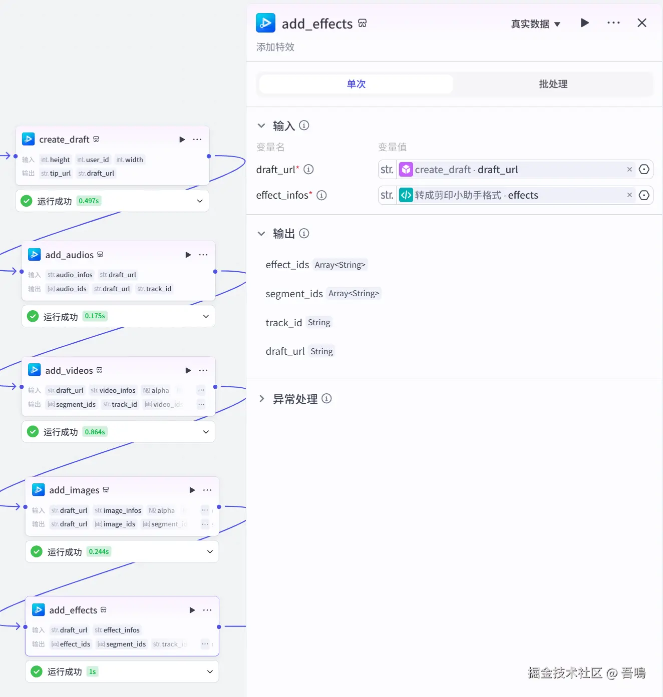 这个节点使用到了扣子第三方插件【视频合成_剪映小助手】的【add_effects】工具,作用就是漫画在抖动的效果。