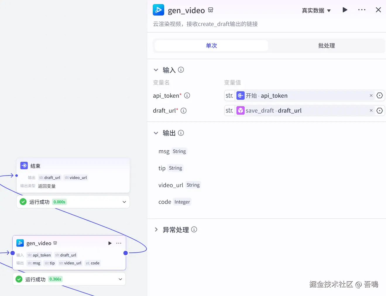 这个节点使用到了扣子第三方插件【视频合成_剪映小助手】的【gen_video】工具。
