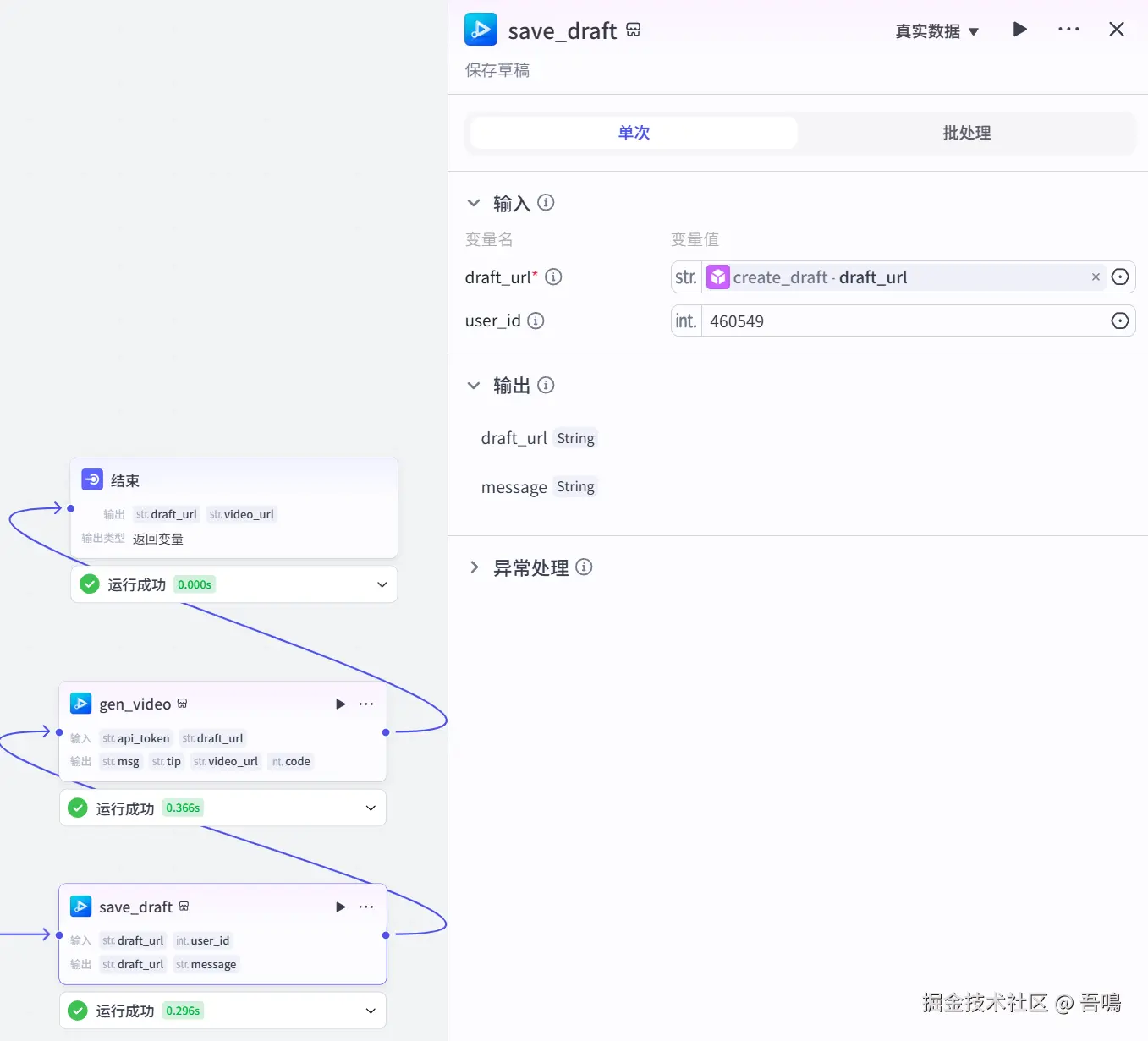 这个节点使用到了扣子第三方插件【视频合成_剪映小助手】的【save_draft】工具。