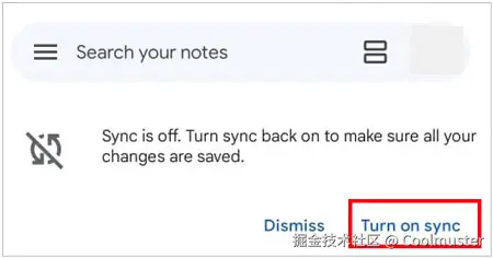 第 2 步: 要将您的笔记与您的 Google 帐户同步,请在看到应用程序顶部的提示表明同步当前已关闭后,点击“打开同步”选项。