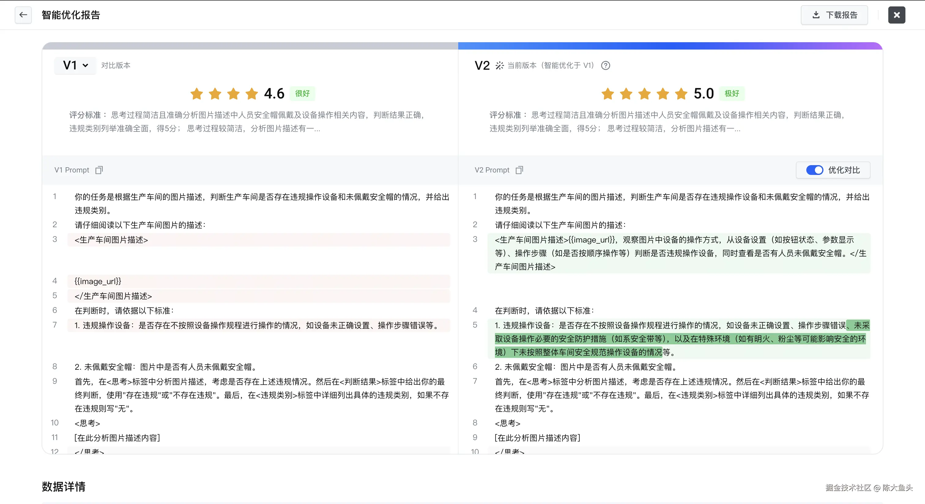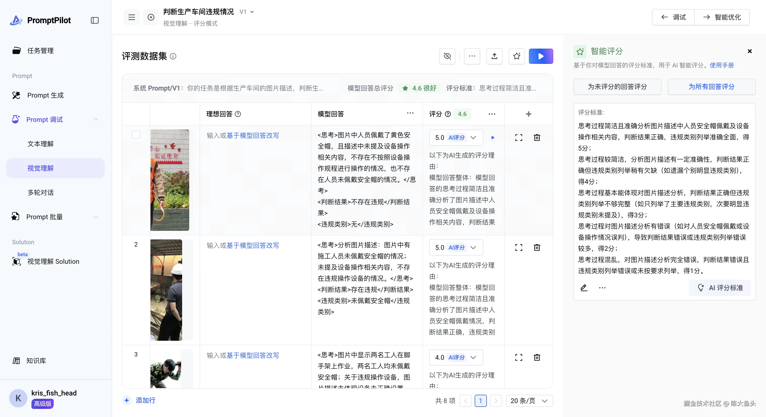 然后就是根据 Prompt 进行单个到多个 case 的调试并且打分: