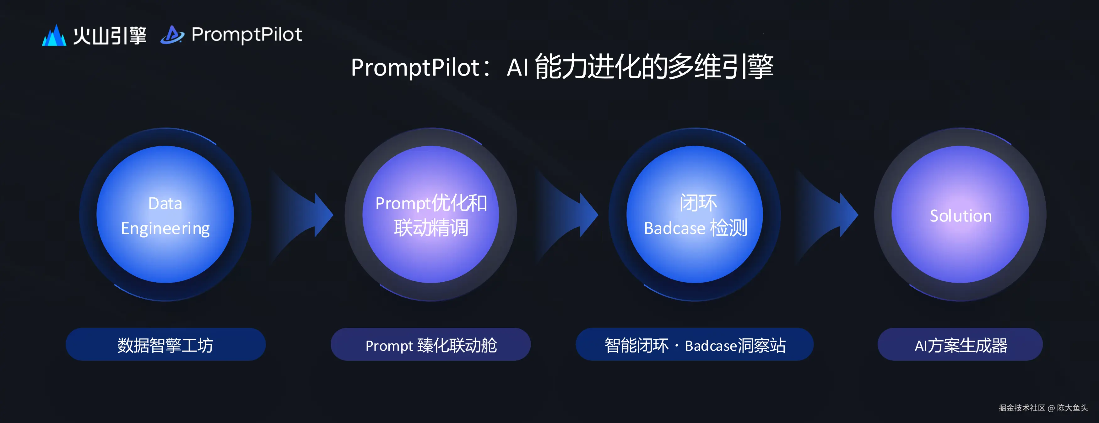 第一场 PPT 演讲就是由火山引擎 PromptPilot 技术负责人许伟进行的。