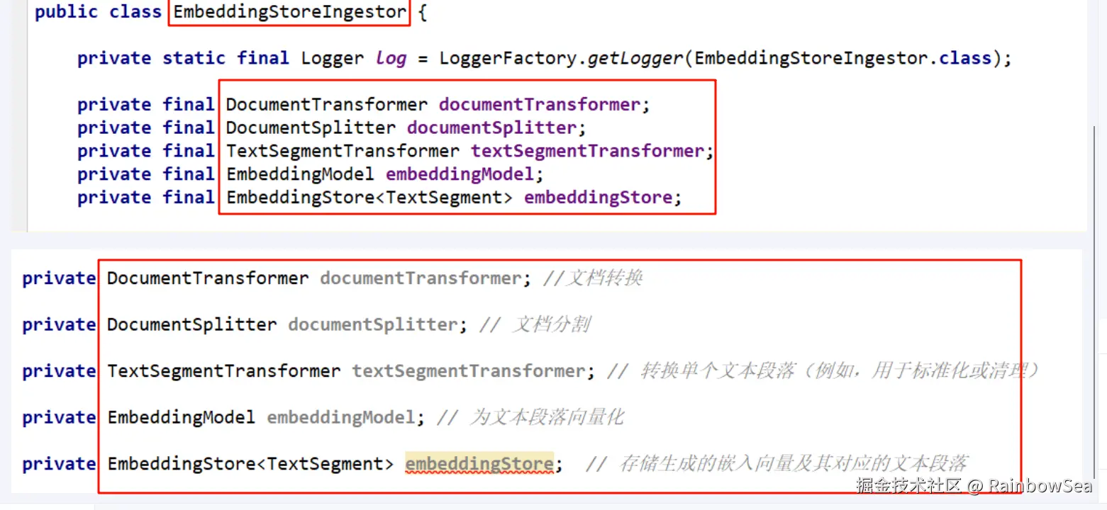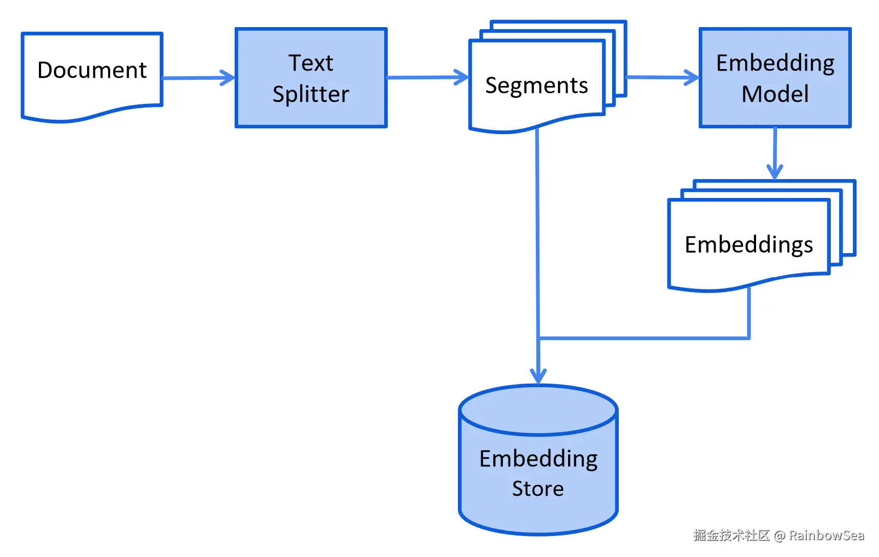 - 嵌入文档:使用EmbeddingModel将文档片段转换为嵌入向量