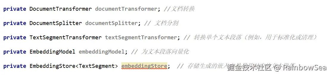 InMemoryEmbeddingStore<TextSegment> embeddingStore;