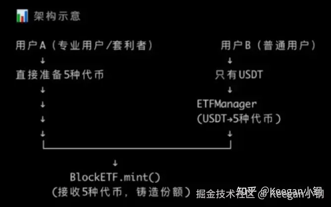 用户可以通过投入一篮子底层资产来铸造对应数量的 ETF 份额代币,也可以通过赎回份额代币来换回等值的底层资产。