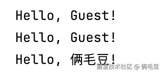 greet("俩毛豆"); // 输出: Hello, 俩毛豆!