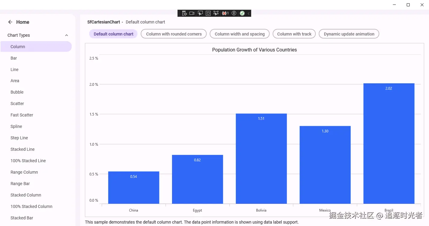 - 图表控件:支持多种数据可视化图表如:笛卡尔图表、圆形图表、漏斗图、极坐标图表、金字塔图等。