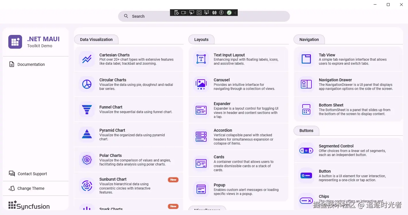 Syncfusion.Maui.Toolkit 是一套开源(MIT license)、免费、美观、高性能的跨平台 .NET MAUI 控件库,旨在简化 Android、iOS、macOS 和 Windows 跨平台应用开发。通过使用此工具包,开发者可以轻松构建美观且功能丰富的应用程序,从而缩短开发时间,同时确保跨平台的无缝和引人入胜的用户体验。