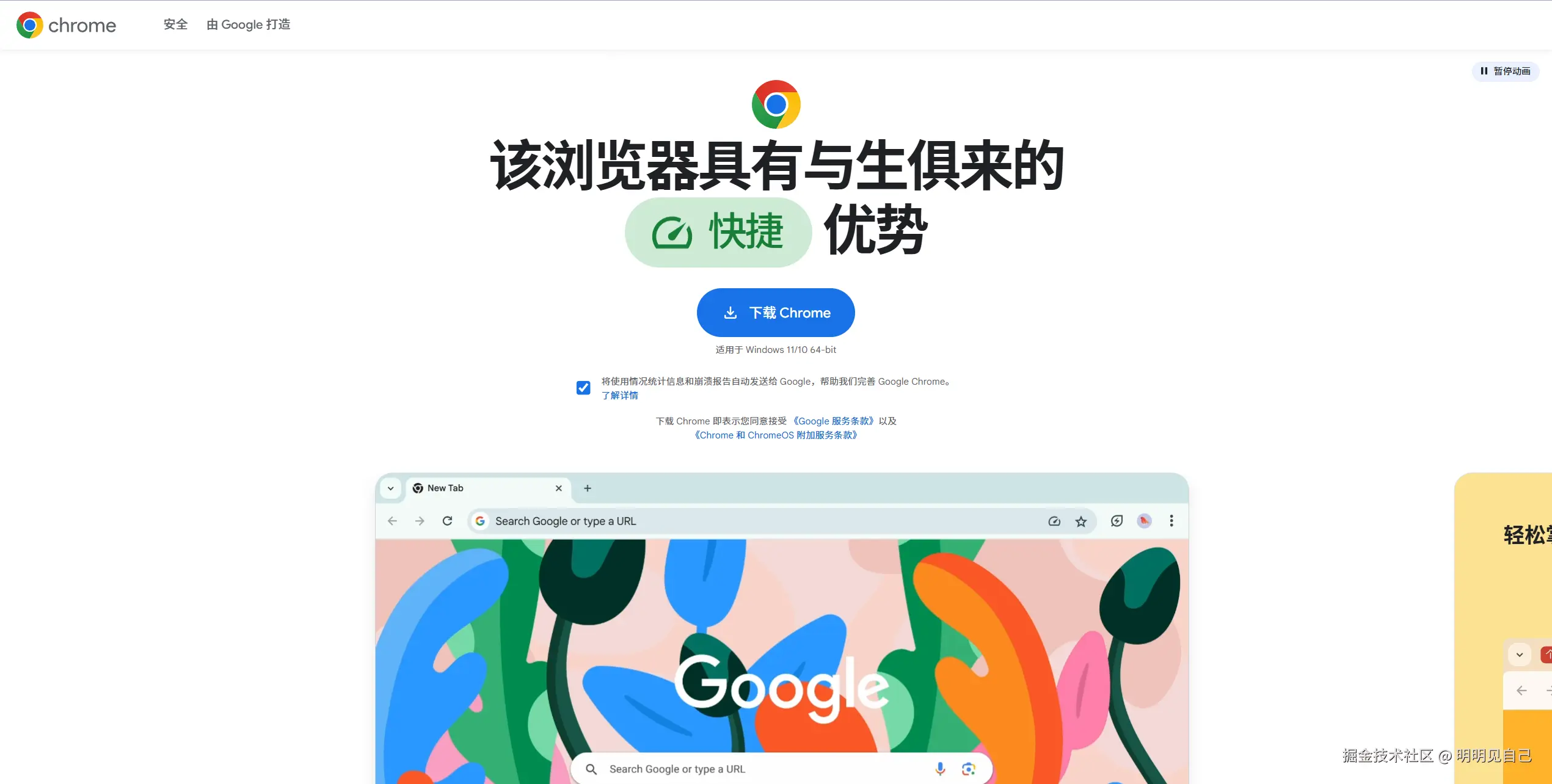 下载Chrome浏览器离线安装包 明明见自己 2025-09-21 190 阅读1分钟 从谷歌浏览器官网下载的安装包是一个安装器,需要联网以后下载安装包到本地以后才能正常安装,当需要在内网环境(无法连接互联网)中安装Chrome,则需要下载完整离线安装包,下载地址如下: https://www.google.cn/chrome/?standalone=1&platform=win64 参数解读: standalone=1 指离线安装包。 platform=win64 指64位Windows 版本。 下载的安装包有130M。 双击打开后,没有联网下载,直接开始安装。