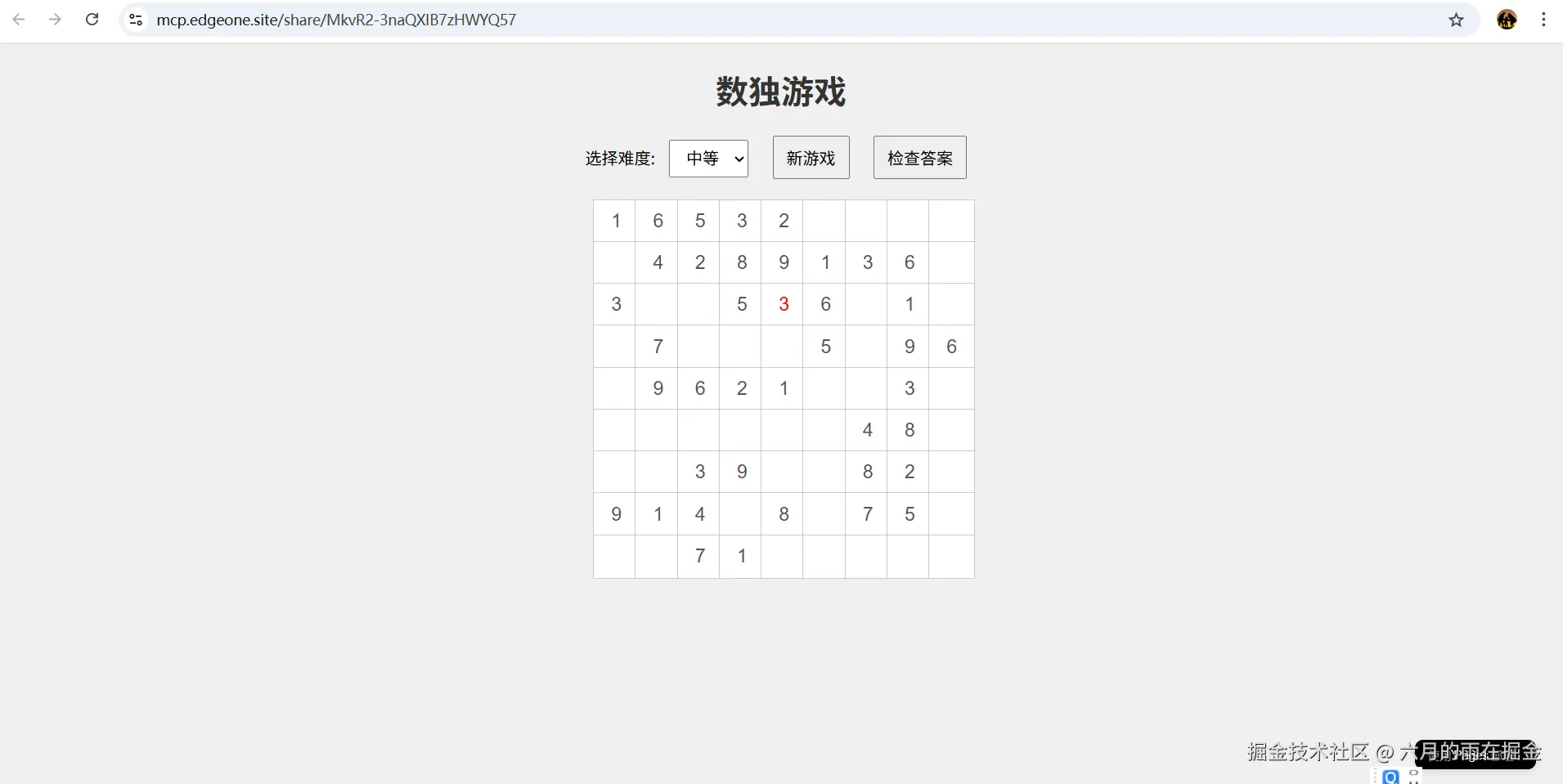 等待数独小游戏部署成功之后,我们可以直接点击部署URL 来试玩我们的数独小游戏了