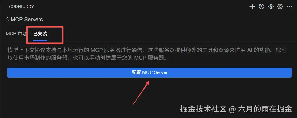 在打开的MCP 配置页面选择【已安装】-【配置MCP Server】