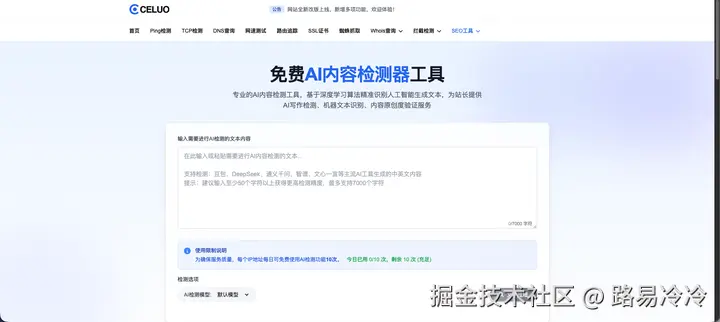 在当今数字化的世界里,网站的性能与内容质量是其成功的两大基石。面对人工智能内容生成的迅猛发展,如何确保网站内容的原创性和真实性,成为了站长们面临的新挑战。测罗站长工具平台,一个旨在帮助站长快速定位并解决网络质量问题的集成化诊断工具,现已将AI内容检测器作为其核心功能之一,为您的网站保驾护本护航。我们坚信,只有将专业的网络诊断与前沿的内容鉴别技术相结合,才能在激烈的竞争中脱颖而出。