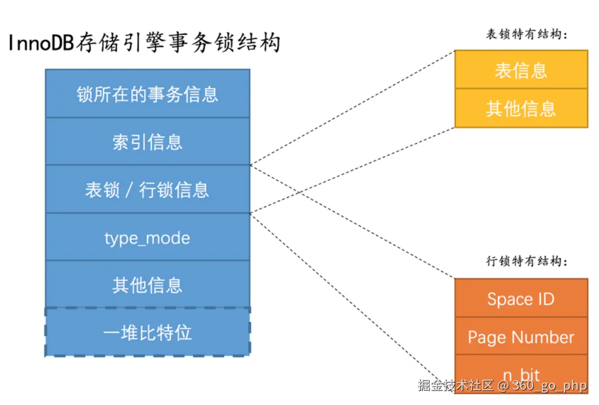 - 由于是行锁,所以接下来需要记录的是三个重要信息: