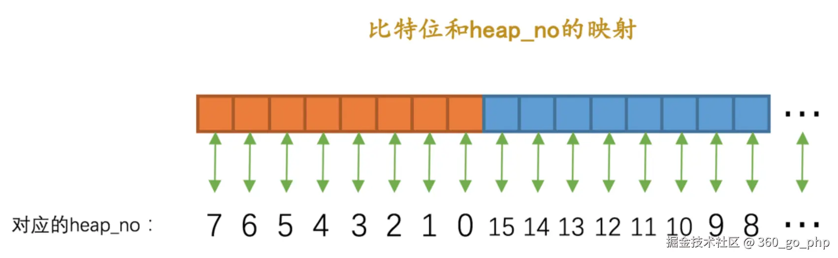 一堆比特位因为number值为15的记录heap_no值为5,根据上边列举的比特位和heap_no的映射