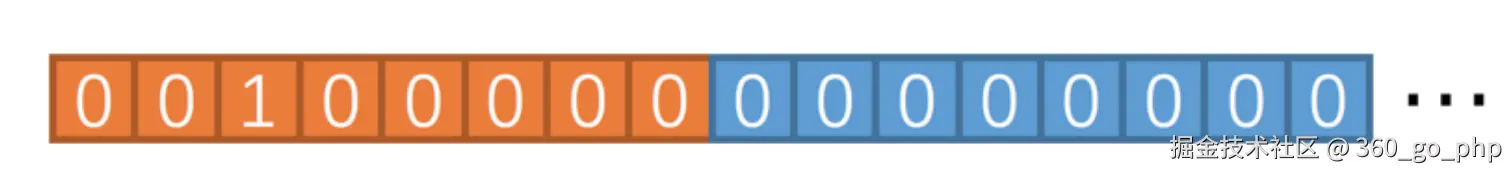 图来看,应该是第一个字节从低位往高位数第6个比特位被置为1,就像这样: