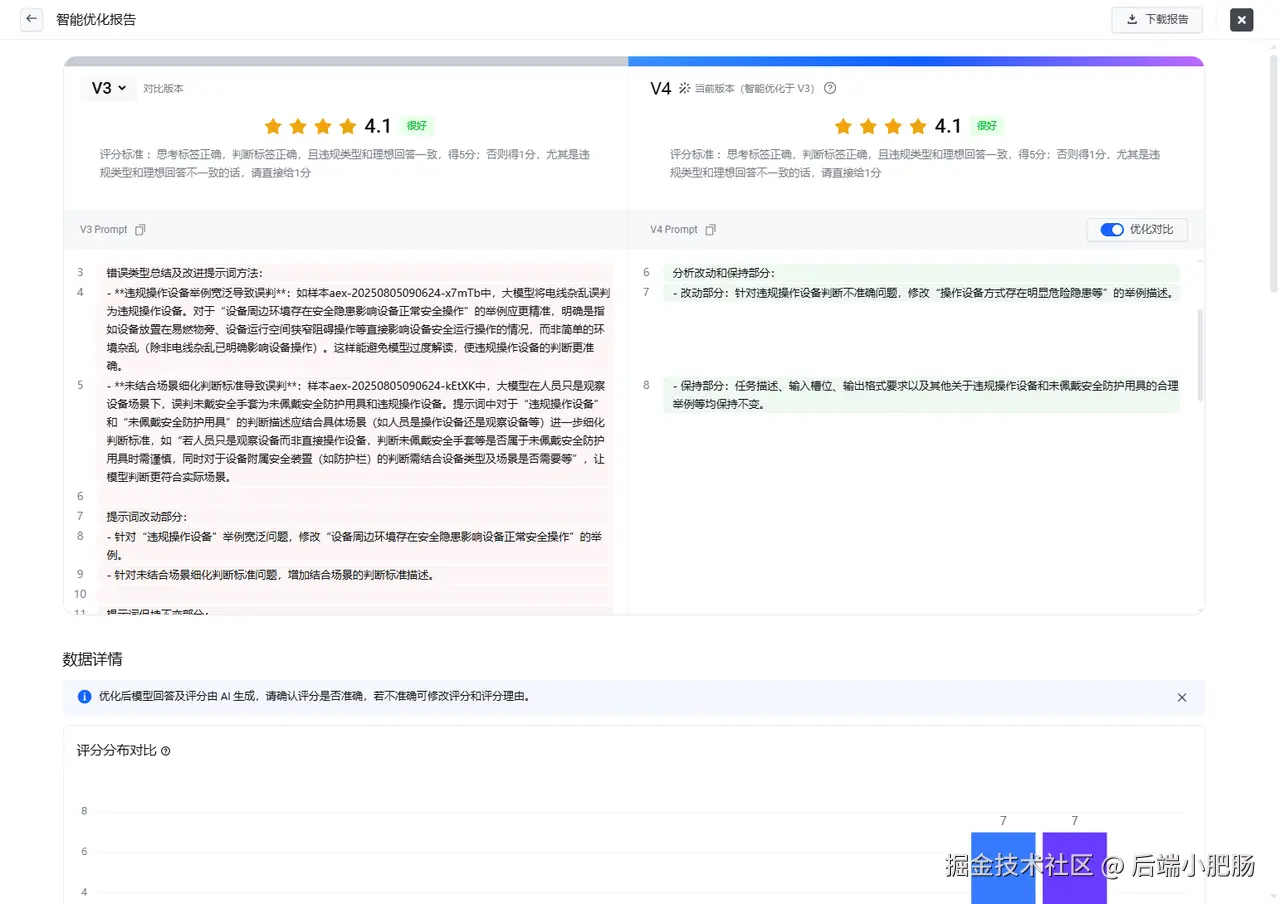 评分结束后进入只能优化就能得到我们最终的提示词,同时他还会把优化项列出来: