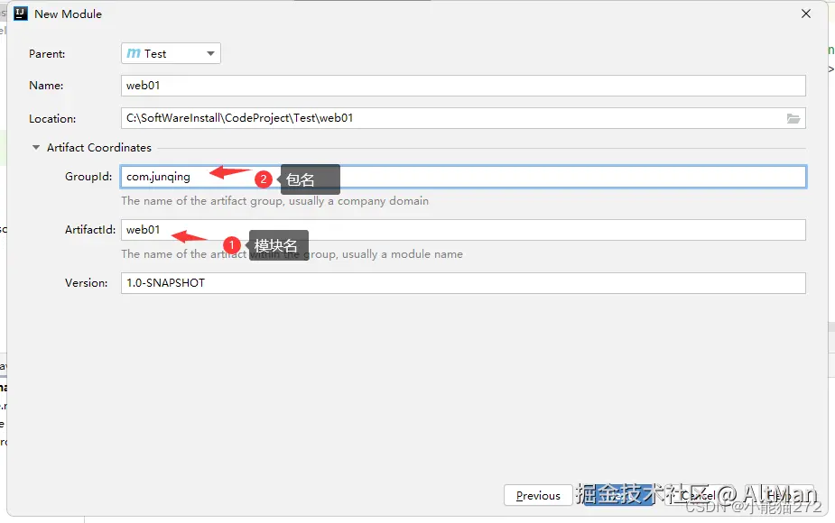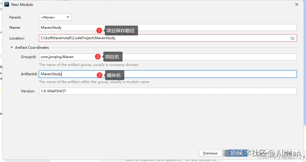 - artifactId:定义当前Maven模块名称(通常是模块名称)