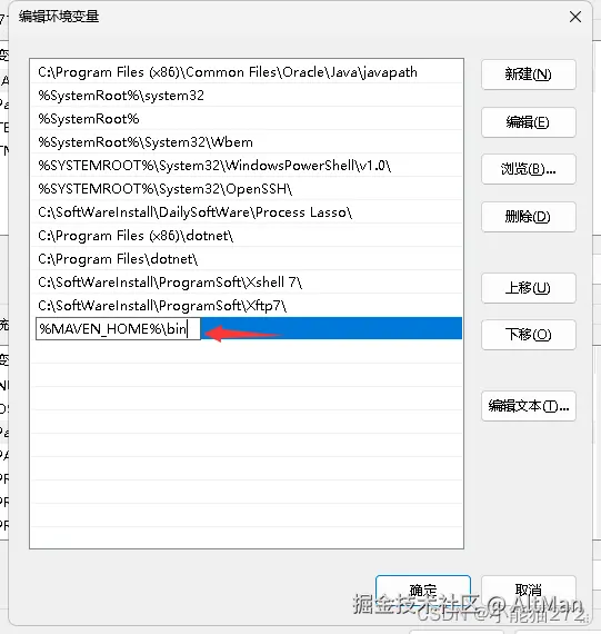 - 在Path中添加一个路径%MAVEN_HOME%\bin