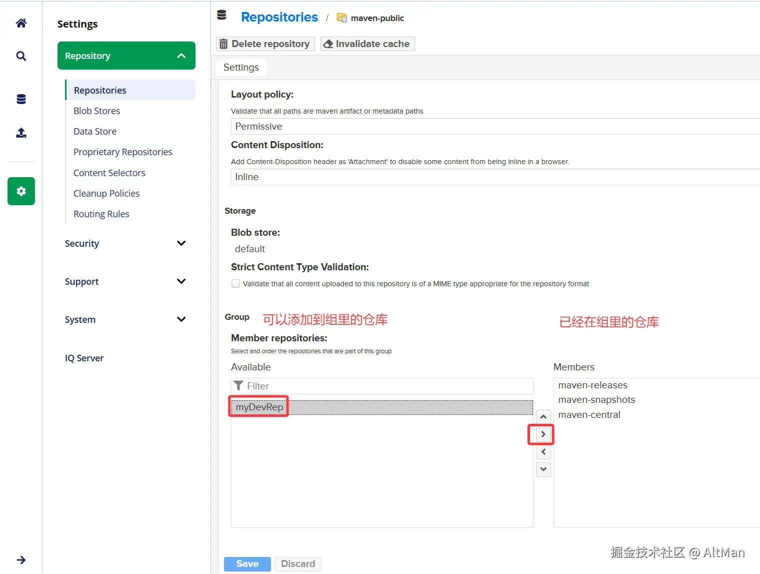 - 点击 maven-public,将我们新创建的仓库添加到组中