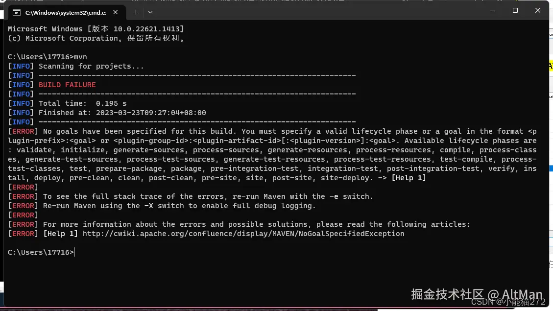 - cmd中输入mvn,如果出现任务指令,则说明配置成功