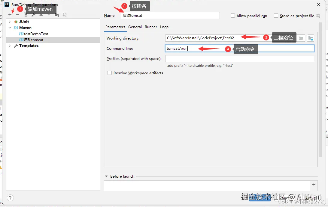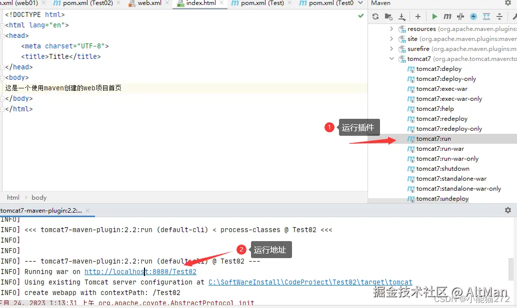 pom.xml文件的build标签中的plugins标签中新增加一个plugin标签,如果没有就字节写一部分,把赋值的依赖粘贴进去,如下面代码所示,然后配置启动端口和路径