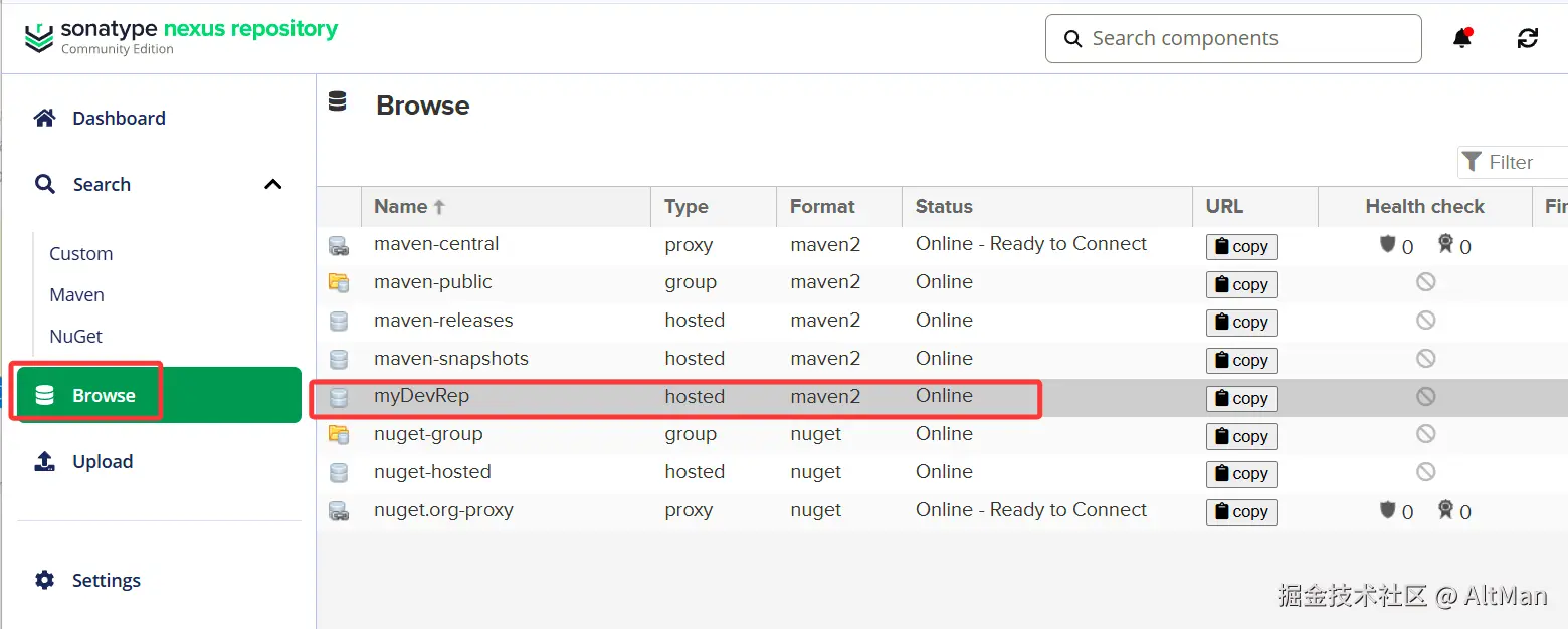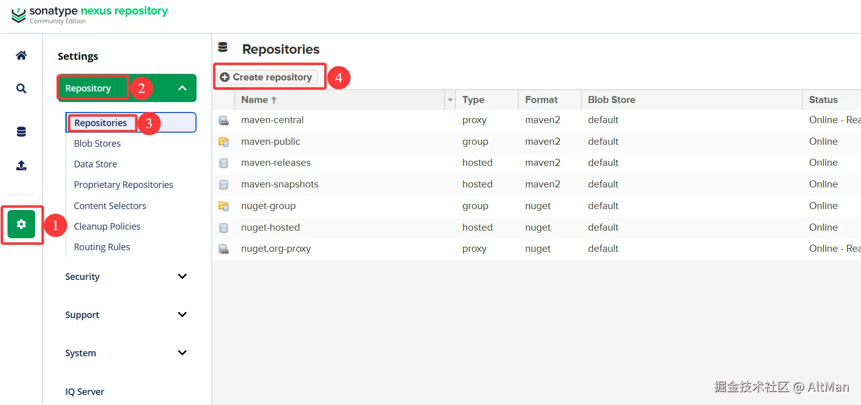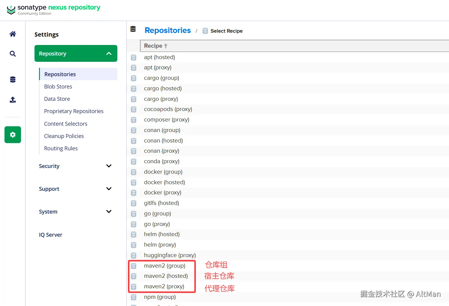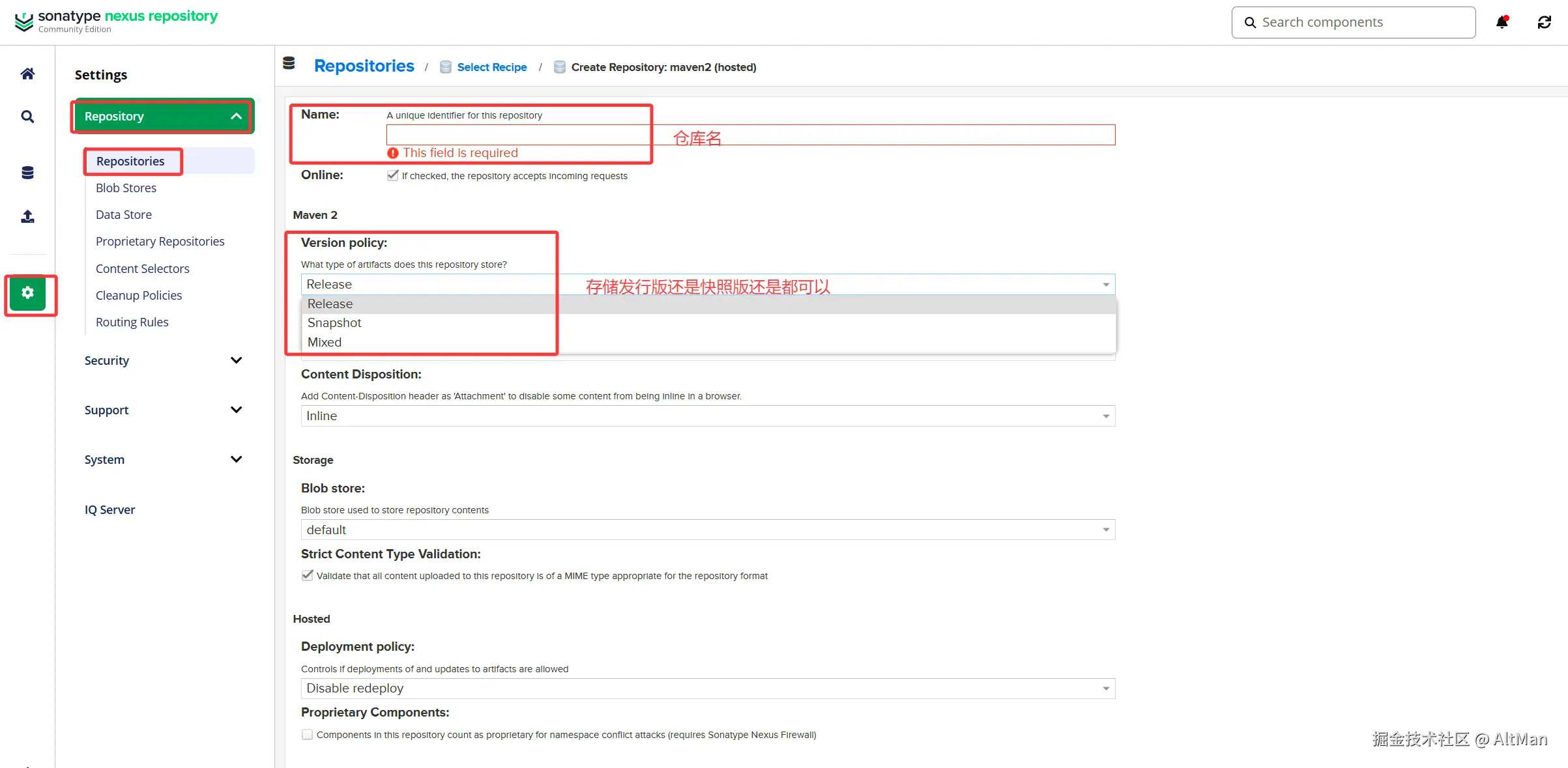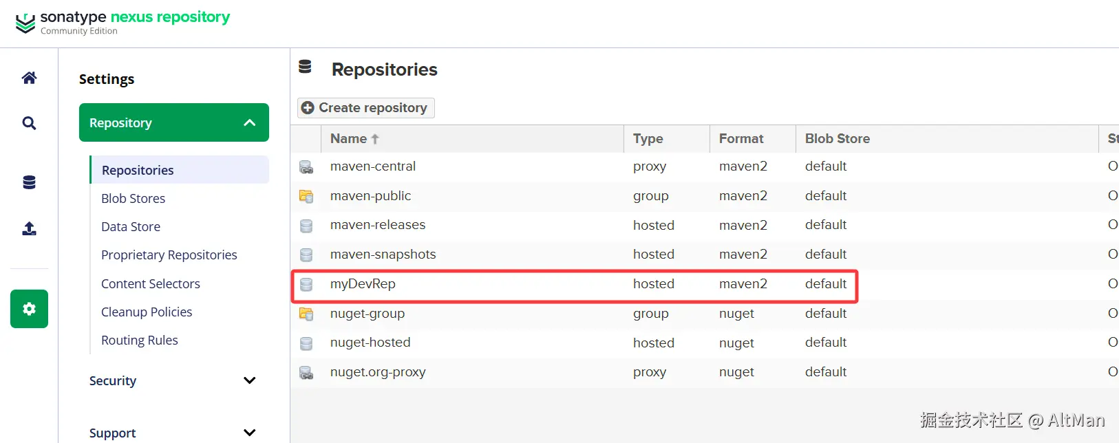 - 选择仓库类型,这里我创建了一个宿主仓库