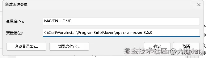 - 系统变量中新建一个MAVEN_HOME,值是Maven的安装目录