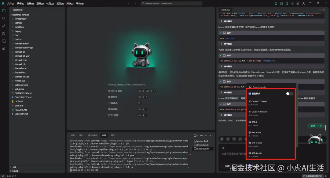 - 在CodeBuddy里,把大任务拆解成小任务,用GPT-5作为主力模型生成代码。