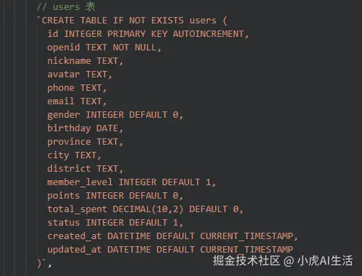 users、products、cart_items、orders、order_items五张核心表的详细设计。