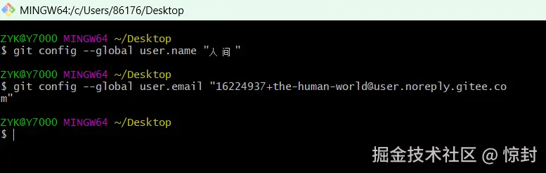 git config --globalthe-human-world@user.noreply.gitee.com"