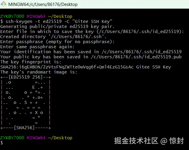 还是在怎样生成公钥里的命令ssh-T git@gitee.com,复制一下,粘贴到git上,运行后在符号?后输入yes,就说明配置成功了。