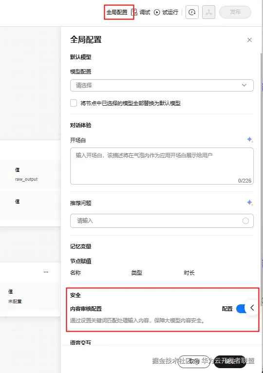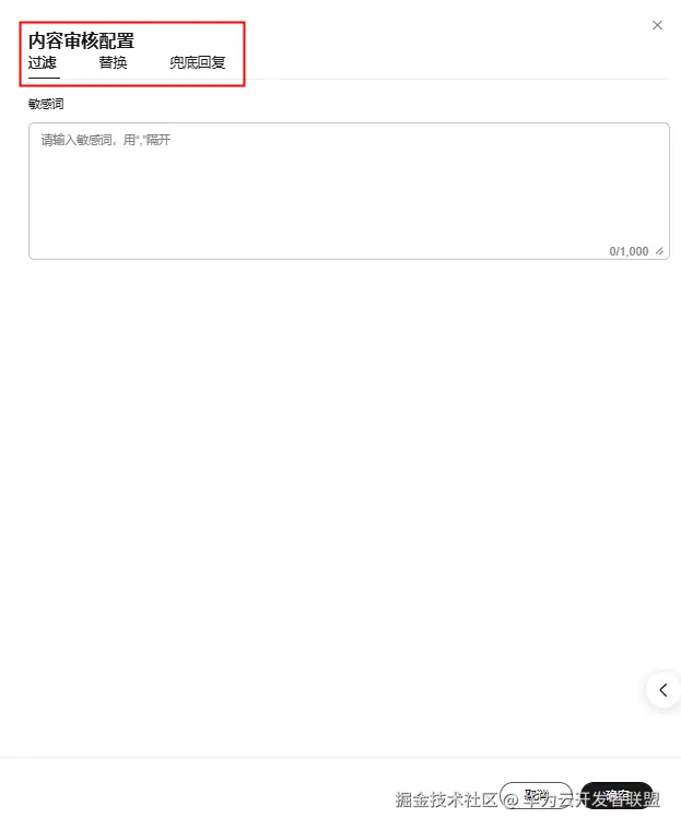 · 支持配置敏感内容审查和风控:支持配置敏感词,触发后可以进行过滤、替换以及设置兜底回复,确保输出合规。