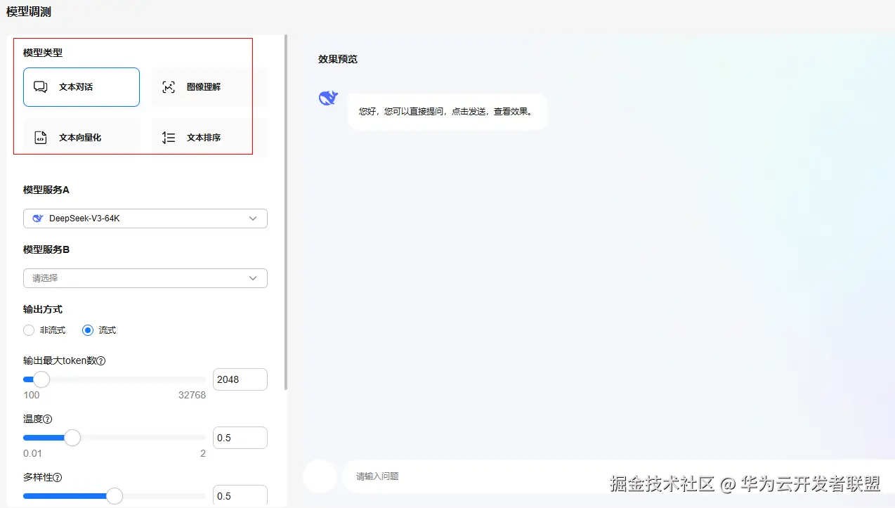 · 支持模型调测,对比不同模型的效果