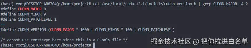 cat /usr/local/cuda-12.1/include/cudnn_version.h | grep CUDNN_MAJOR -A 2