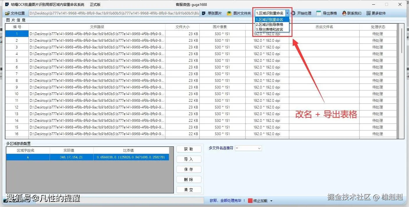 咕嘎批量OCR识别图片PDF多区域内容重命名导出表格系统