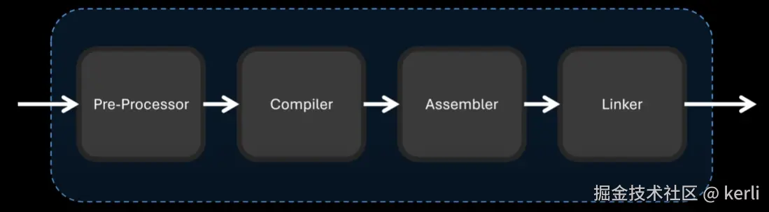 GCC 的编译过程可以分为 4 个阶段:预处理、编译、汇编、链接。