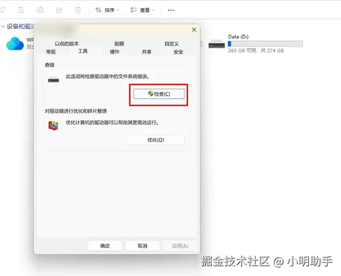 步骤2: 在“属性”中选择“工具”,之后在“查错”的板块中点击“检查”。