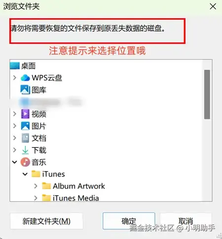 步骤3: 点击完“导出”按钮后会弹出以下小窗,我们还需要选择恢复文件的落脚之地,才能完成好整个恢复文件的流程。