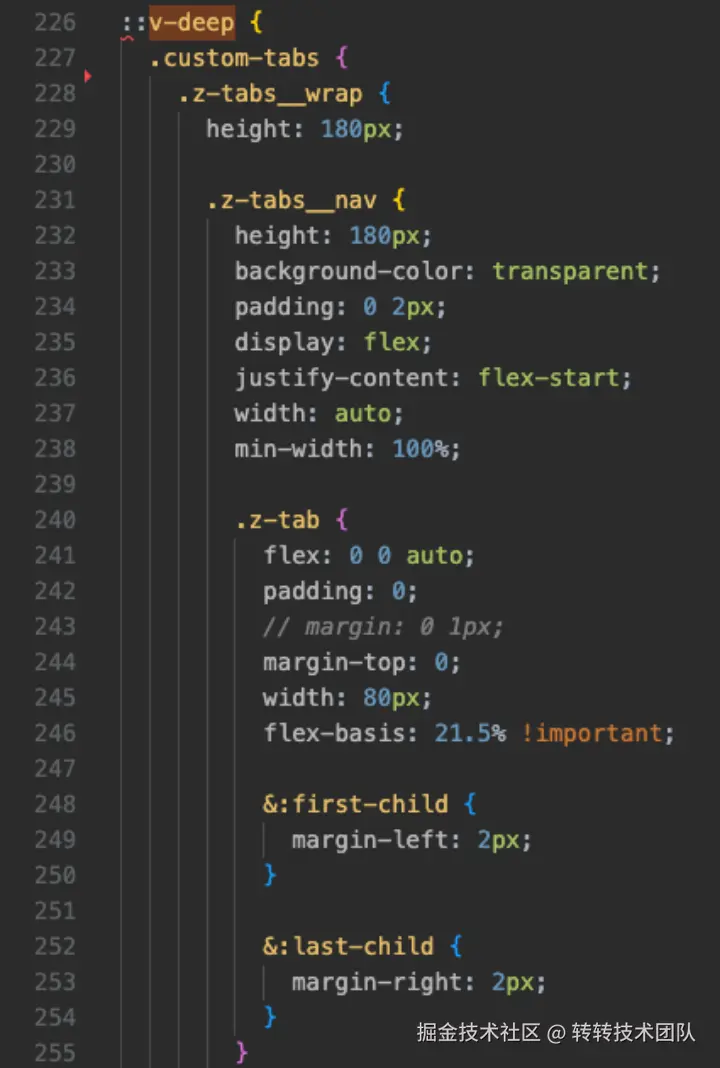 我要改选中态底部的选中表示,将红杠换成倒白色三角,这就需要找到组件内的z-tab--active class类,设置background为白色三角的图片。但是AI并不知道选中态的类为z-tab--active,没有对应的上下文,对这种场景,AI修改对应样式就属于完全不可用状态。需要我们使用透传的方式,在业务代码中区修改样式。