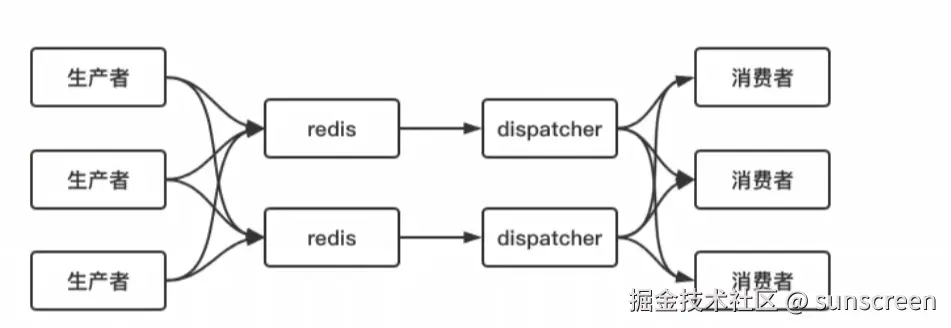 生产者将定时任务hash到不同的redis实体中,为每一个redis实体分配一个dispatcher进程,用来定时获取redis中超时事件并发布到不同的消费者中;